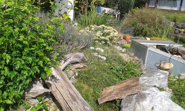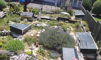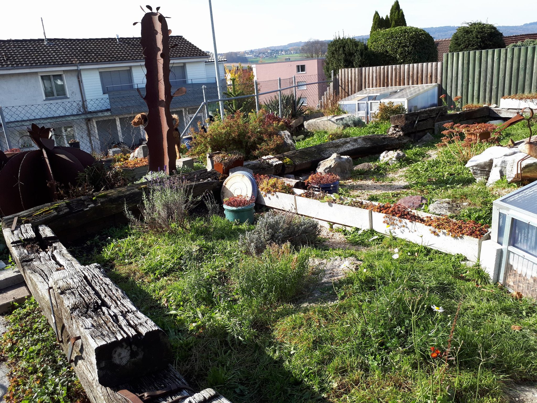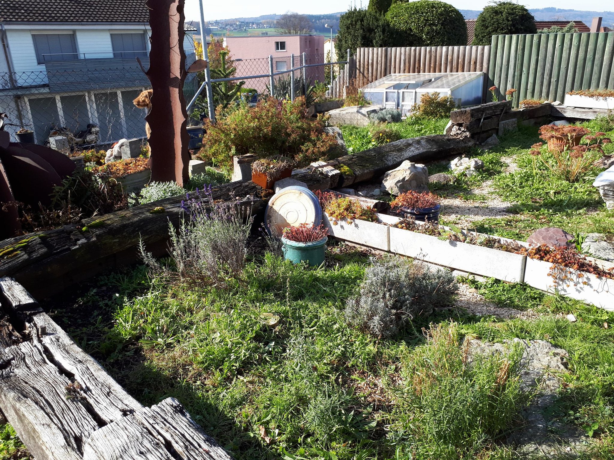 Die Anlage im heissen Juni-Juli 2017 mit abgedeckten Frühbeeten.