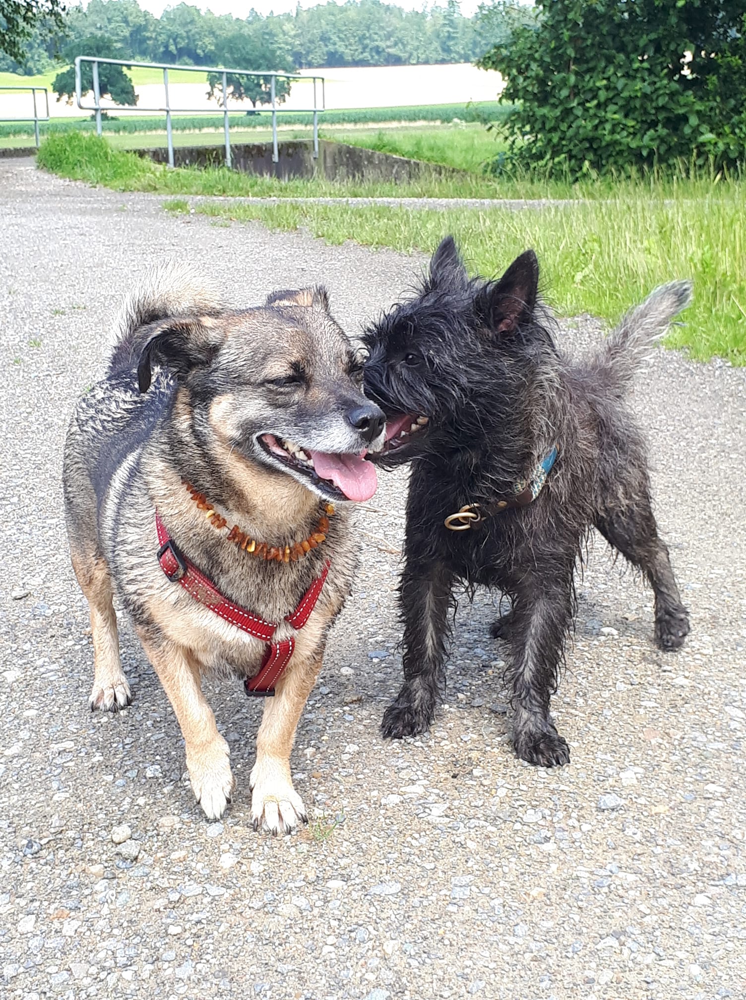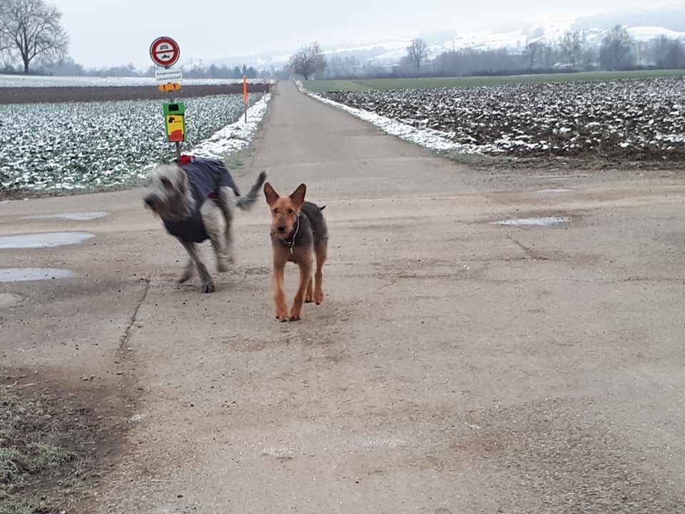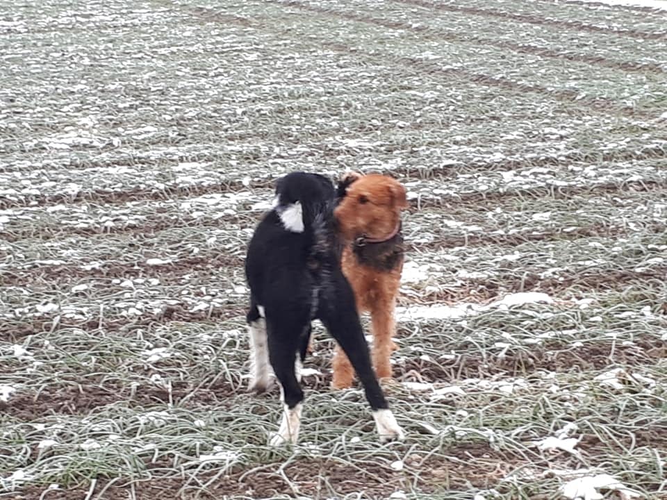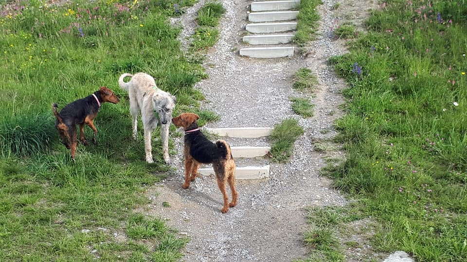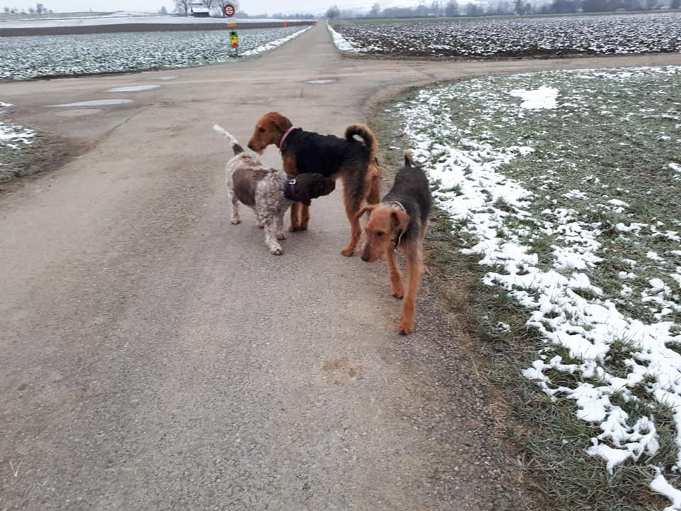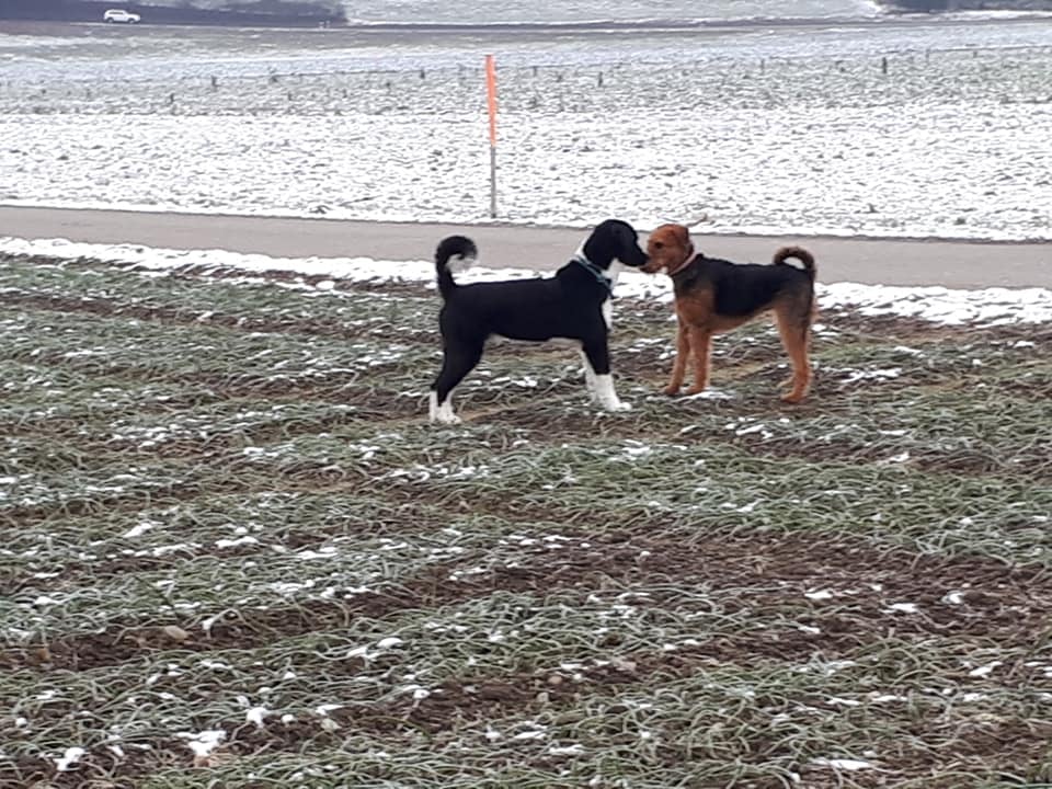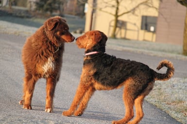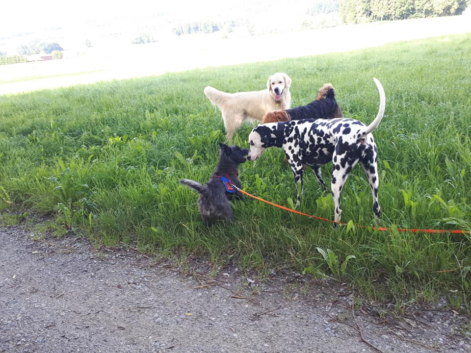 Lassen Sie Ihren Hund auf dem Spaziergang Kontakt mit anderen Hunden aufnehmen.